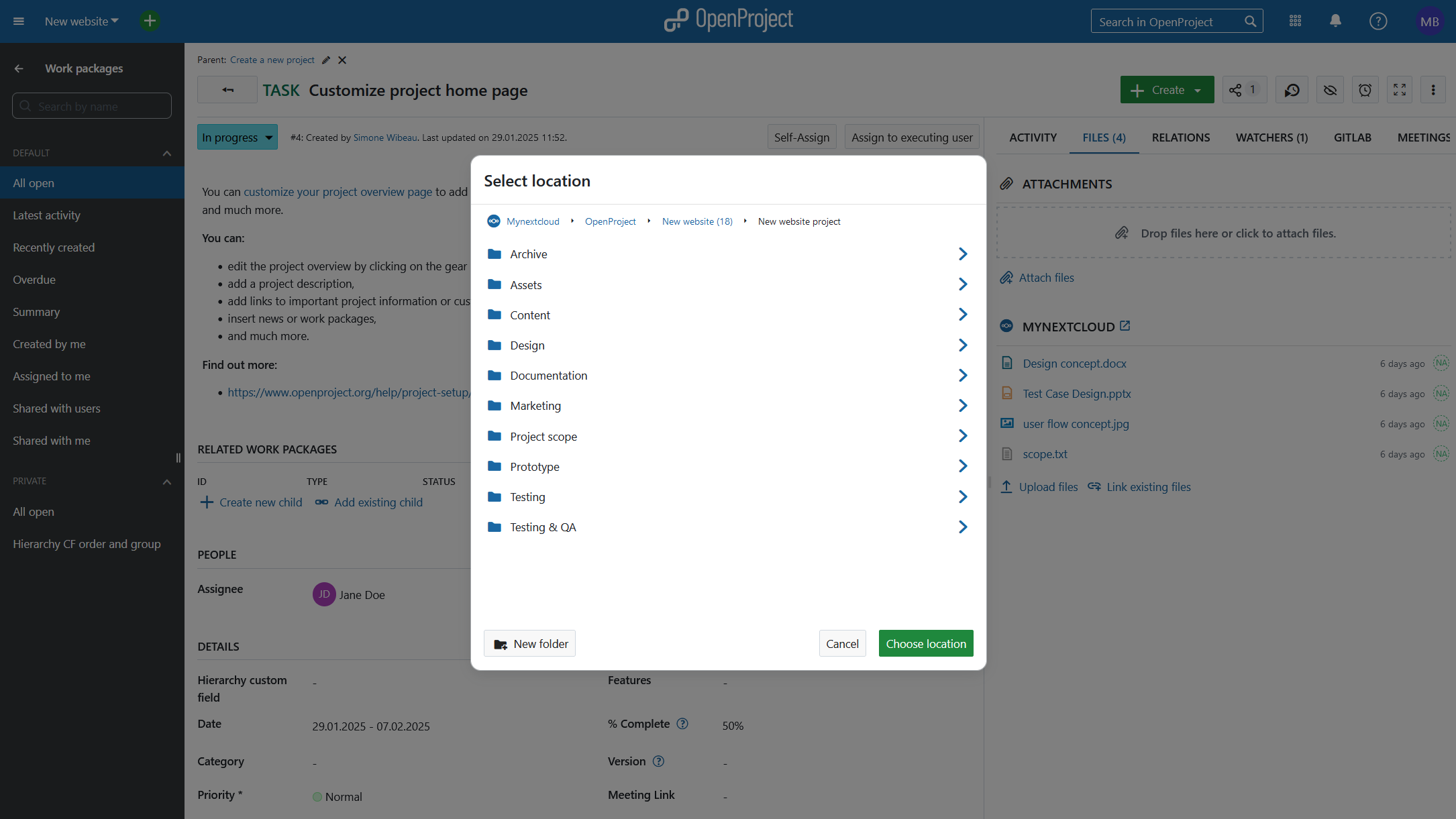 How to use the OpenProject Nextcloud integration