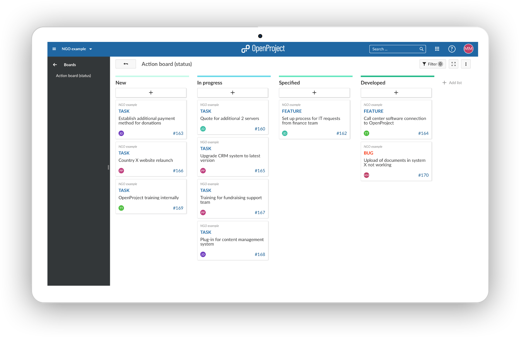 With OpenProject the whole organization can follow the same processes.