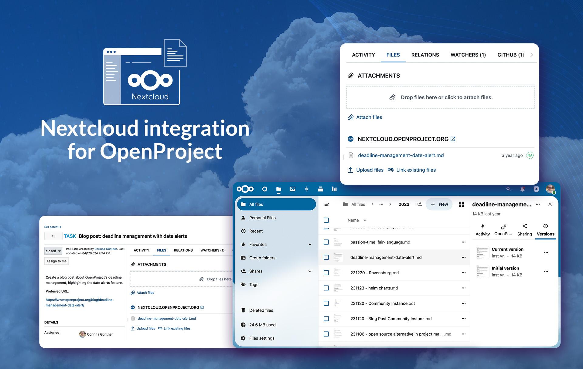 Combine the power of open source software with full data control: Integrate OpenProject’s project management with Nextcloud’s secure, self-hosted file management.