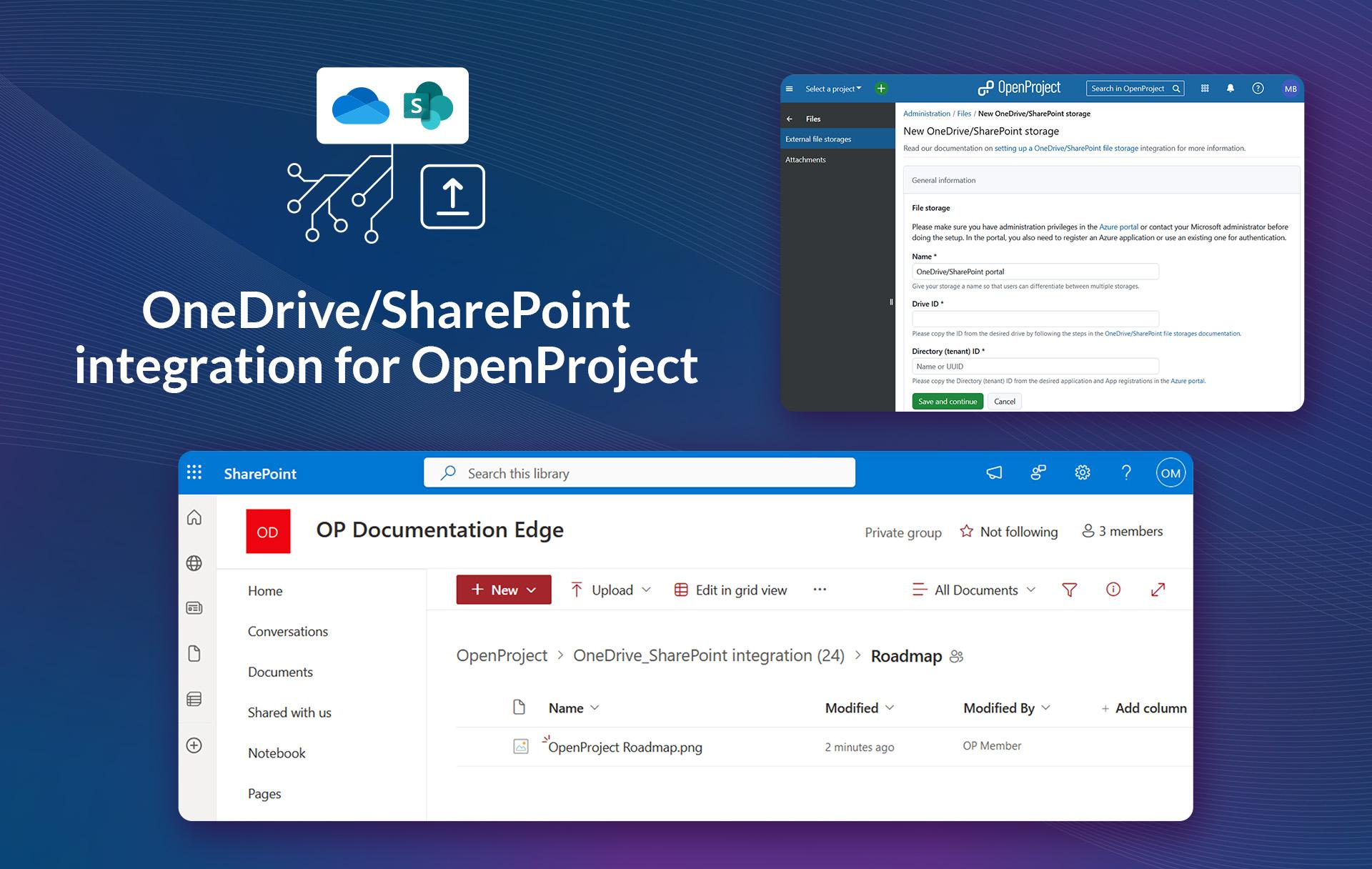 Integrate OpenProject with established tools in your organization: Streamline document management by integrating SharePoint or OneDrive with your projects in OpenProject.